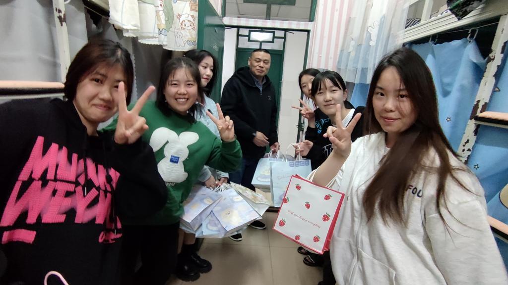 军训正当时,青春正磨砺。为进一步丰富新生军训生活,营造良好的校园文化氛围。2023年4月4日,旅游与管理学院辅导员带领团学分会全体干部深入宿舍走访慰问新同学,诚挚送上了关心与祝福。
