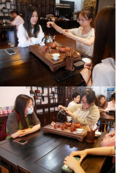 旅游与管理学院心理部部长阿布尔呷、副部长王林向大家详细介绍了中国茶文化的发展以及茶的种类 ,并讲解了其赏茶、品茶等形式与中国传统文化和礼仪相结合,形成的具有中国特色的文化体系。