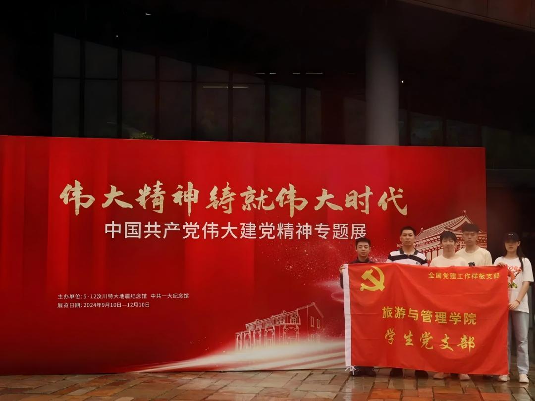 为做好党员教育工作,加强党团一体化建设,2024年9月25日,旅游与管理学院学生党支部党员、入党积极分子和团总支学生干部赴5·12汶川特大地震纪念馆与中共一大纪念馆联合主办的“中国共产党伟大建党精神专题展”进行了参观学习,并在活动后一同前往北川石椅羌寨进行了文化交流。此次参观学习活动由学院党总支副书记周嵘带队。