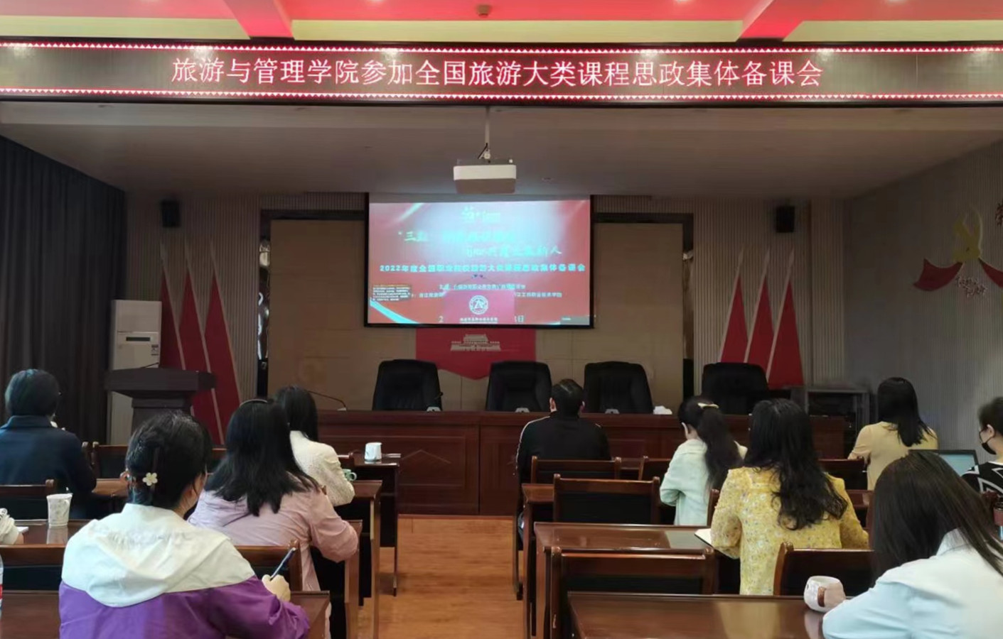 2022年9月17-18日,2022年全国职业院校旅游大类课程思政集体备课会举办,本次集体备课会全程通过“智慧职教”平台进行线上直播,以“‘三教’赋能课程思政同心共育文旅新人”为主题。旅游与管理学院组织旅游专业群全体专业教师参加。
