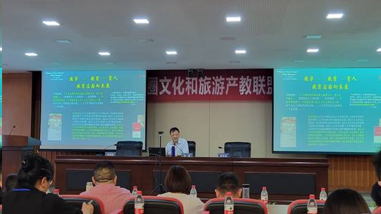 上午的会议为三教改革的专题研讨,四川工程职业技术学院旅游管理系教师王苏老师带来了《“双高专业群”建设背景下高职专业课程改革创新路径的探索与实践》讲座;梓潼县七一高级职业中学校梁金蓉副校长对新时代大职业教育背景下中职旅游类专业教材编写进行了分享与思考。