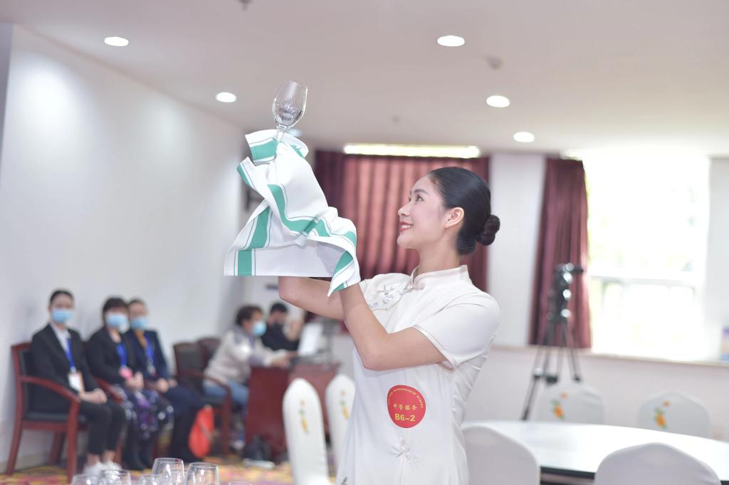 在申小婷饭店服务技能大师工作室成员的指导下,参赛选手按照比赛要求积极备赛、刻苦训练,在比赛中沉着冷静、稳定发挥,展现了精益求精的工匠精神和扎实娴熟的专业技能。