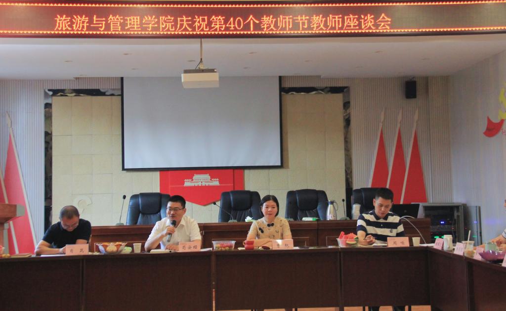 为庆祝第40个教师节的到来,9月3日下午,旅游与管理学院在材料大楼A301会议室举行教师节座谈会。学校党委常委、副校长苟安经出席并讲话。学院党总支书记曹艳主持会议,全体教职工参会。