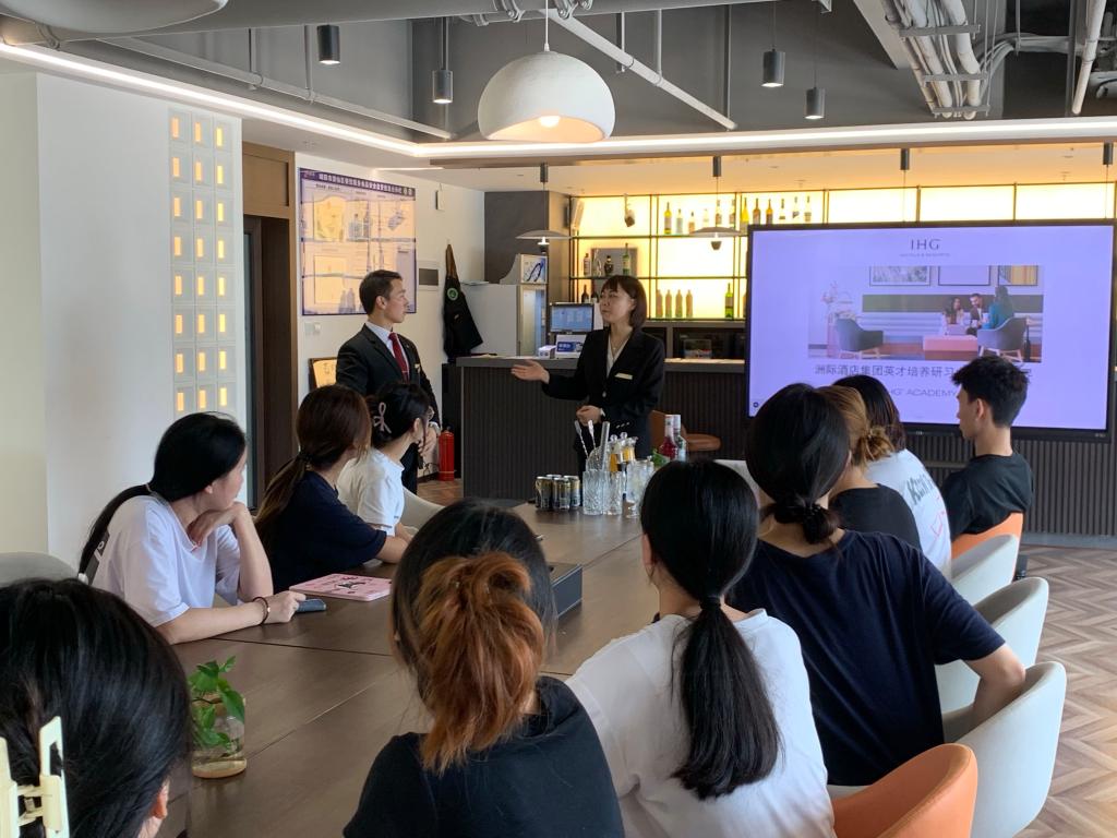 本次活动由成都世纪城洲际大饭店人力资源部赵雪莉、培训师沙库拉林、旅游与管理学院酒店管理与数字化运营教研室教师们及2022级酒店管理与数字化运营专业洲际英才班的17名学生参加。