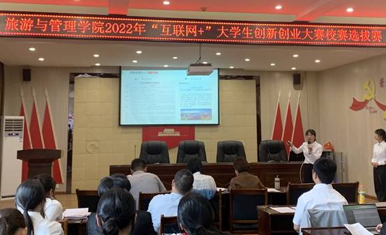 为了响应国家“大众创新,万众创业”的号召,进一步做好我院2022年“互联网+”大学生创新创业大赛项目的甄选、培育工作,旅游与管理学院于5月20日在材料大楼会议室301举行了校赛选拔赛。