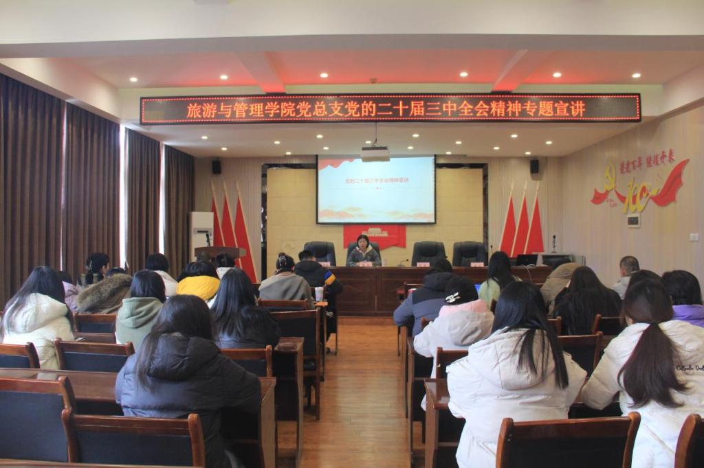 为进一步学习贯彻党的二十届三中全会精神,推动全会精神入脑入心、见行见效,12月11日下午,学院党总支书记曹艳面向全院教职工、部分学生代表开展党的二十届三中全会精神专题宣讲。
