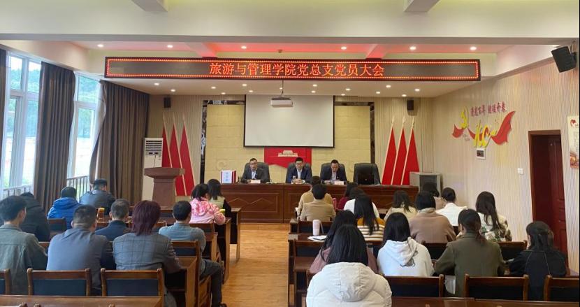 10月27日,旅游与管理学院党总支召开党总支成立暨选举大会。大会应到正式党员25人,实到21人。党总支书记苟安经作党总支选举筹备工作情况、工作报告及党费收缴管理和使用情况报告。会议由党总支副书记杜鹏主持。