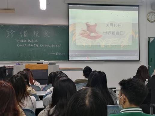 民以食为天,食以粮为本。米粒虽小,尤见礼义廉耻,节俭事微,可助兴国安邦。在世界粮食日到来之际,为了进一步增强同学们节约粮食的意识,了解和掌握粮食相关的基本安全知识、节约粮食的方法,让学生的健康成长、快乐学习。2021年10月17日晚,旅游与管理学院各班开展了2021年世界粮食日主题班会。