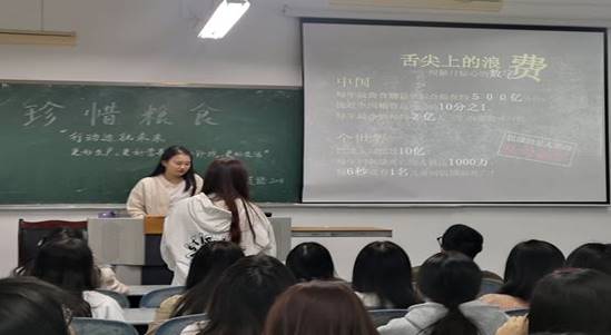 班会旨在进一步增强大学生“珍惜粮食”的思想意识,让同学们在生活中培养物尽其用,不浪费粮食、爱惜粮食、节约粮食的好品质。弘扬中华民族勤俭节约的传统美德,教育引导学生做勤俭节约、光盘行动的传播者、践行者。吃饭不忘农人苦,粒粒粮食,滴滴汗珠,爱惜粮食,从我做起。