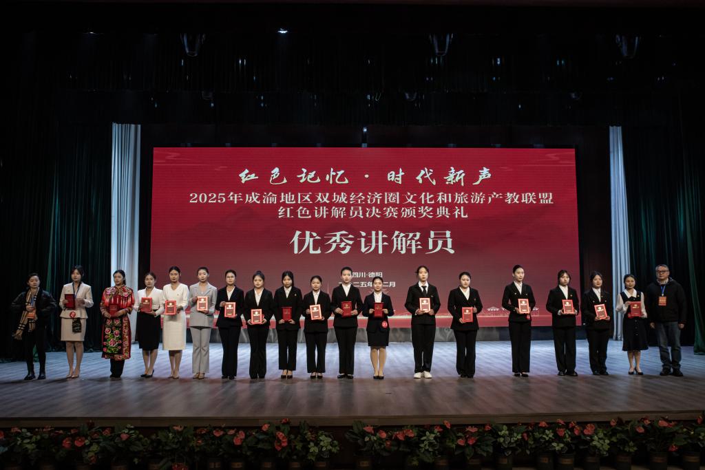 12月19日上午,成渝地区双城经济圈文化和旅游产教联盟2025年红色讲解员决赛在四川工程职业技术大学二教演播厅圆满落幕。大赛以“红色记忆·时代新声”为主题,由联盟主办,德阳市中华职业教育社、绵阳市中华职业教育社指导,四川工程职业技术大学、重庆青年职业技术学院与我校联合承办,吸引联盟成员单位学生、行业从业人员等众多选手同台竞技,以声音传递红色力量、弘扬时代精神。