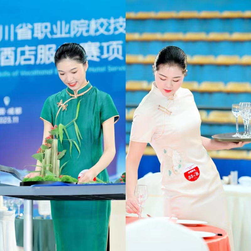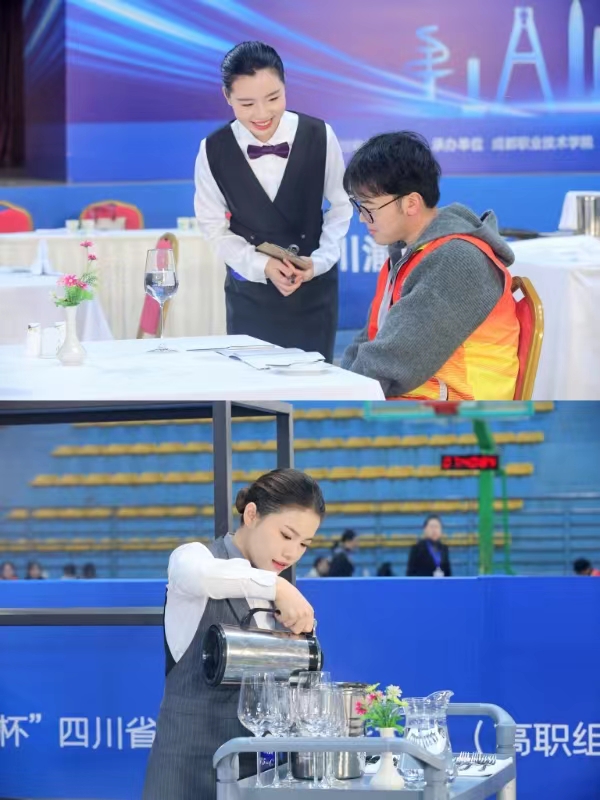 近日,由四川省教育厅主办的2023年“中银杯”四川省职业院校技能大赛(高职组)酒店服务赛项在成都职业技术学院举行。共有来自全省高职院校43支代表队参赛。旅游与管理学院酒店管理与数字化运营教研室经过严格筛选,选拔出六名优秀参赛选手,组成2支参赛队伍参加此次比赛,经过激烈角逐,张雨、周晓清、周信幸团队荣获大赛一等奖、王仙颖、付献莉、黄迪团队荣获大赛三等奖。陈国元、陈阳荣获优秀指导教师奖。