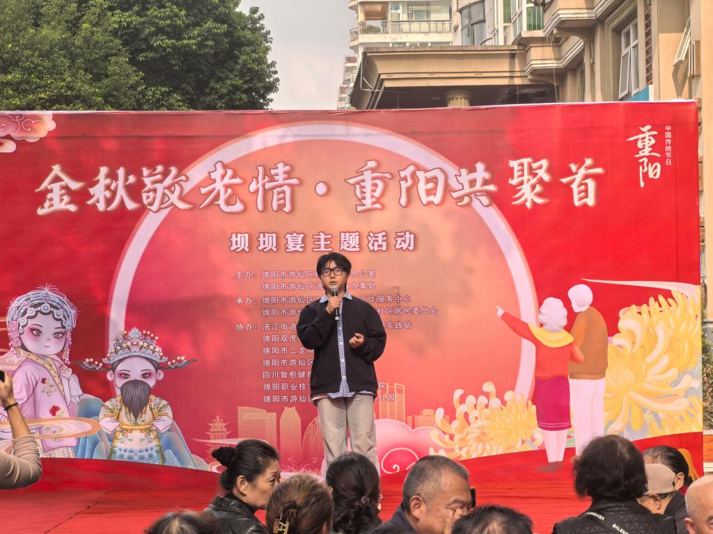为弘扬中华民族尊老、敬老、爱老的传统美德,10月27日,文化旅游学院师生前往涪江街道韩家脊社区,参与协办重阳节坝坝宴文艺慰问活动。同学们表演了民族舞蹈、歌曲等节目,并与老人亲切交流,用文艺表演与暖心互动,为社区老人送上节日的祝福与关怀。